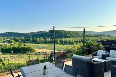 Montez à La Panoramique, une chambre spectaculaire située au premier étage. Dès votre réveil, détendez-vous et profitez d'une vue panoramique imprenable sur la vallée de la Dordogne depuis votre fenêtre. Cette chambre offre une perspective inoubliable sur ce paysage époustouflant, vous offrant une expérience immersive au cœur du Périgord Noir.